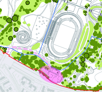 views overlook the athletics stadium and it is surprisingly