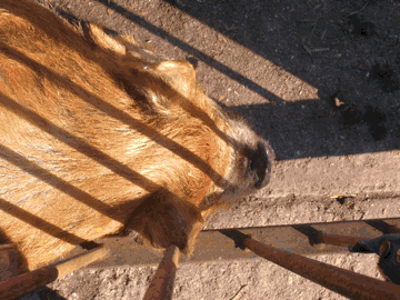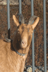 inhabitants of this goat enclosure looks out over the park -