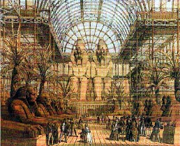 "The nave held a fantastic Winter Garden of botanical displays and statuary with exhibits of architecture, ethnography and manufacturers. Its architects intended the contents of the Palace to form an 'illustrated encyclopaedia'."The whole history of sculpture was on display with several thousand plaster casts of statues representing every important statue you can imagine. Then there were the meticulous archaeological reproductions of the architectural courts, the Assyrian, the Pompeian, the Alhambra, the Gothic and so on, and the colossal Abu Simbel figures standing 65 ft high."