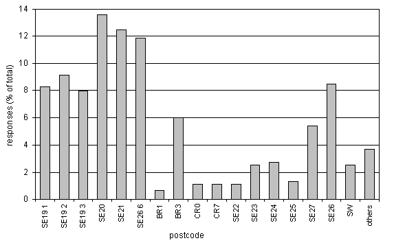 Figure 7 : Responses to questionnaires - by postcode
